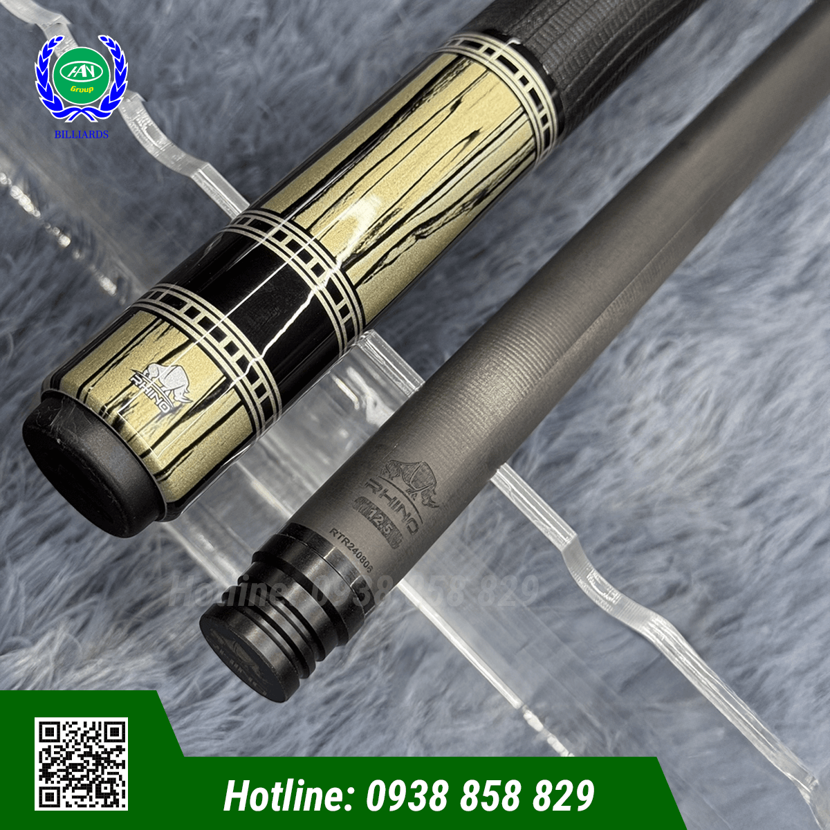 Tên sản phẩm: Cơ Bida Lỗ Rhino Retro Ebony Point/Leather Wrap